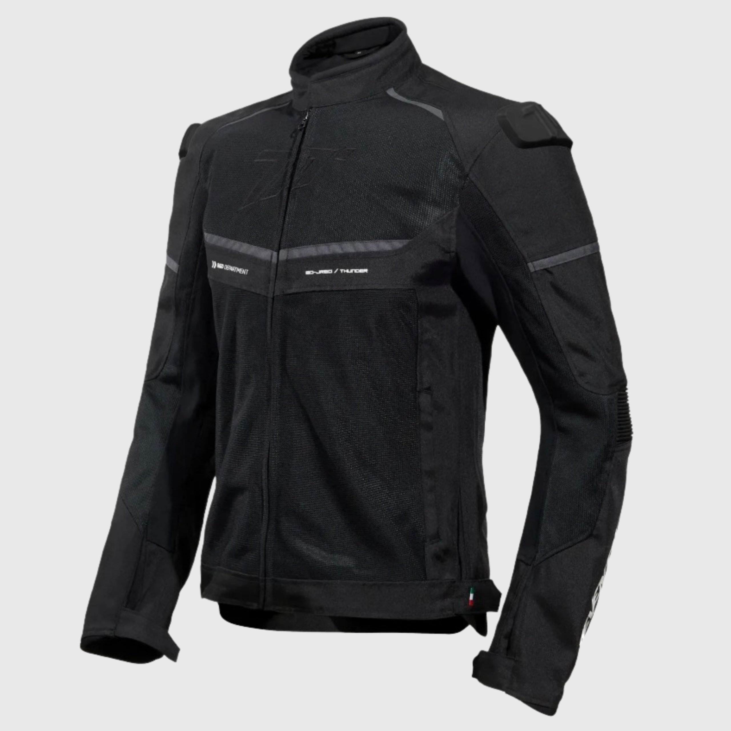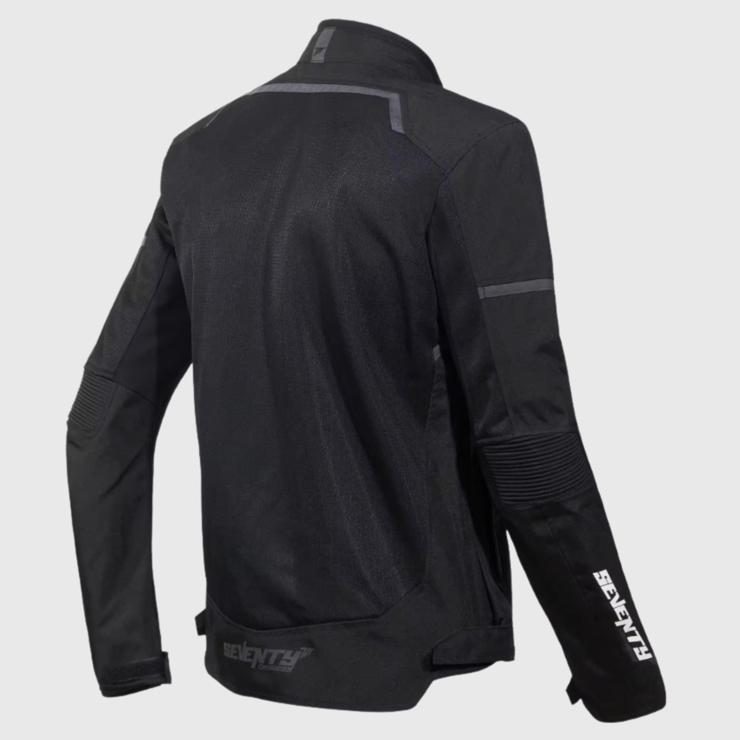 Excelente para su uso diario en la ciudad, esta chamarra negra que se ve muy bien con cualquier casco, ligera y con protecciones certificadas.